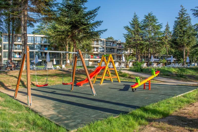 Vstupní hala s recepcí, Wi-Fi ve společných prostorách zdarma, restaurace, bar, lobby bar, bar u bazénu, dětský bazén, sluneční terasa (lehátka a slunečníky u bazénu zdarma; na pláži zpoplatek), fitness centrum, tenisový kurt, plážový volejbal. Za poplatek: masáže, vodní sporty na pláži. Animace pro děti 6x týdně. Animace pro dospělé 6x týdně. Dětská postýlka na vyžádání (poplatek 10 BGN/den).