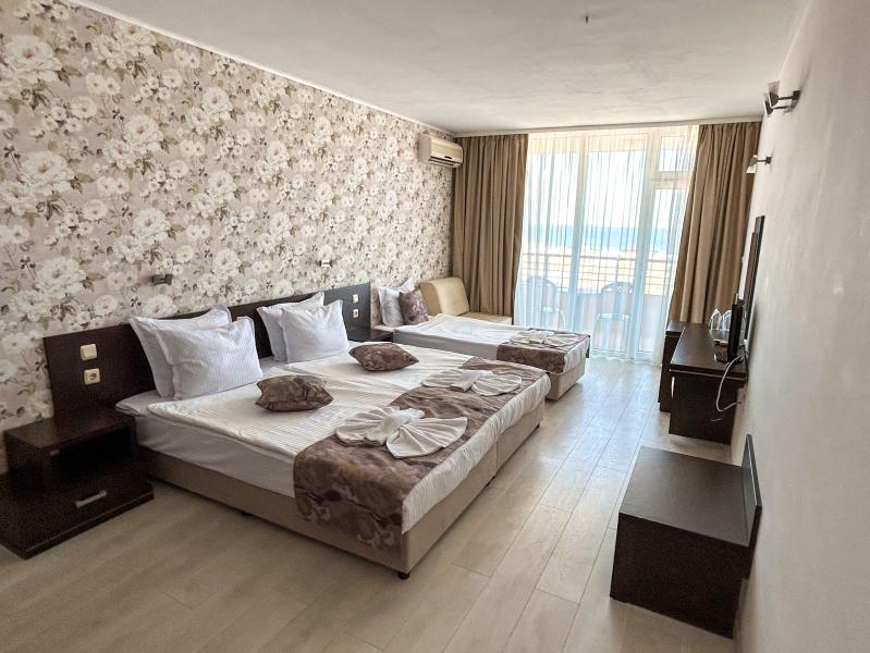 Hotel nabízí dvoulůžkové pokoje, dvoulůžkové pokoje s možností přistýlky, třílůžkové pokoje s možností přistýlky a apartmán s obývacím pokojem a ložnicí. Všechny pokoje jsou vybaveny klimatizací, varnou konvicí, TV, balkónem, lednicí a vlastním sociálním zařízením (sprcha, WC, fén). Některé pokoje jsou s výhledem na moře (za poplatek). WiFi na pokoji zdarma (router na kždém patře hotelu). Dětská postýlka k zapůjčení zdarma.